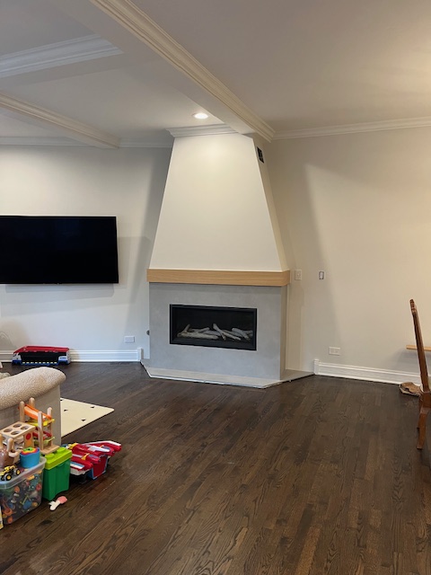 Modern and spacious interior featuring natural light and hardwood flooring, perfect for remodeling projects.Bright and modern living room featuring a sleek fireplace and ample natural light.Modern living room featuring a minimalist fireplace and hardwood flooring.A modern hallway featuring gray walls, black accents, and bright lighting, showcasing contemporary interior design.A newly renovated wooden deck with a clean finish, featuring a railing and steps, perfect for outdoor relaxation.Modern kitchen renovation featuring stylish cabinetry and an open layout.